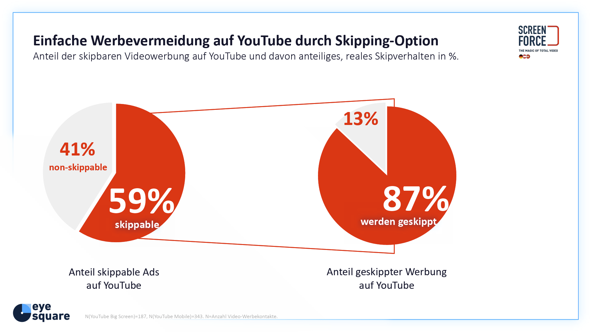 Werbung - insbesondere auf YouTube - wird so gut wie gar nicht gesehen, sondern ehest möglich weg geklickt ("Skip-Button").