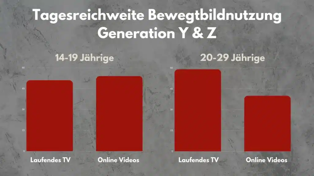 Laut aktuellsten Studien nutzen noch immer 51,5% der 14-19 Jährigen allein lieneares TV täglich, knapp hinter Online Videos mit 54% (es gibt Doppelnutzungen). Geht man eine Altersklasse weiter und nimmt die kaufkraft-starke Gruppe der Millenials her, sieht die Statistik schon ganz anders aus: hier liegt laufendes TV mit beinahe 60% deutlich vor Online Video Inhalten mit 43%. Und bei diesen Zahlen sind aufgenommene TV-Inhalte, Live Stream TV und On Demand TV noch gar nicht enthalten: Addiert man auch diese hinzu, macht TV-Content 66 % des Bewegtbildkonsums der jungen Generation, aus.