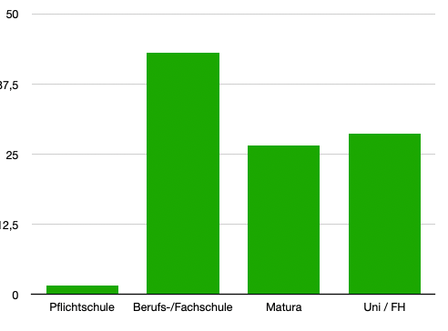 Das heißt, mehr als 55% unsererer Zuseherinnen und Zuseher haben die Matura oder eine höhere Ausbilung (Universität oder FH).