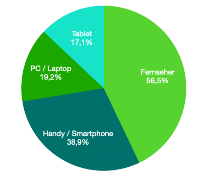 Der überwiegende Teil unserer Zuseherinnen und Zuseher (56,6%) konsumiert das Programm von STEIERMARK TV am Fernseher, weitere 38,9% nutzen das Handy, bzw. Smartphone. Mehrfachnennungen waren hier möglich.