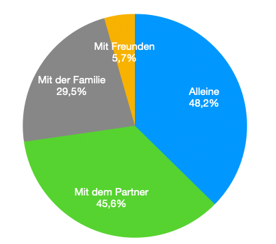 Knapp die Hälfte der Zuseherinnen und Zuseher konsumiert STEIERMARK TV (zumeist) alleine, 45,6 %aber auch gemeinsam mit ihrem Partner/ihrer Partnerin.Allein Schauende sehen das Programm überwiegend am Handy, vor dem Fernseher wird überwiegend mit Partner/-in oder Familie geschaut.